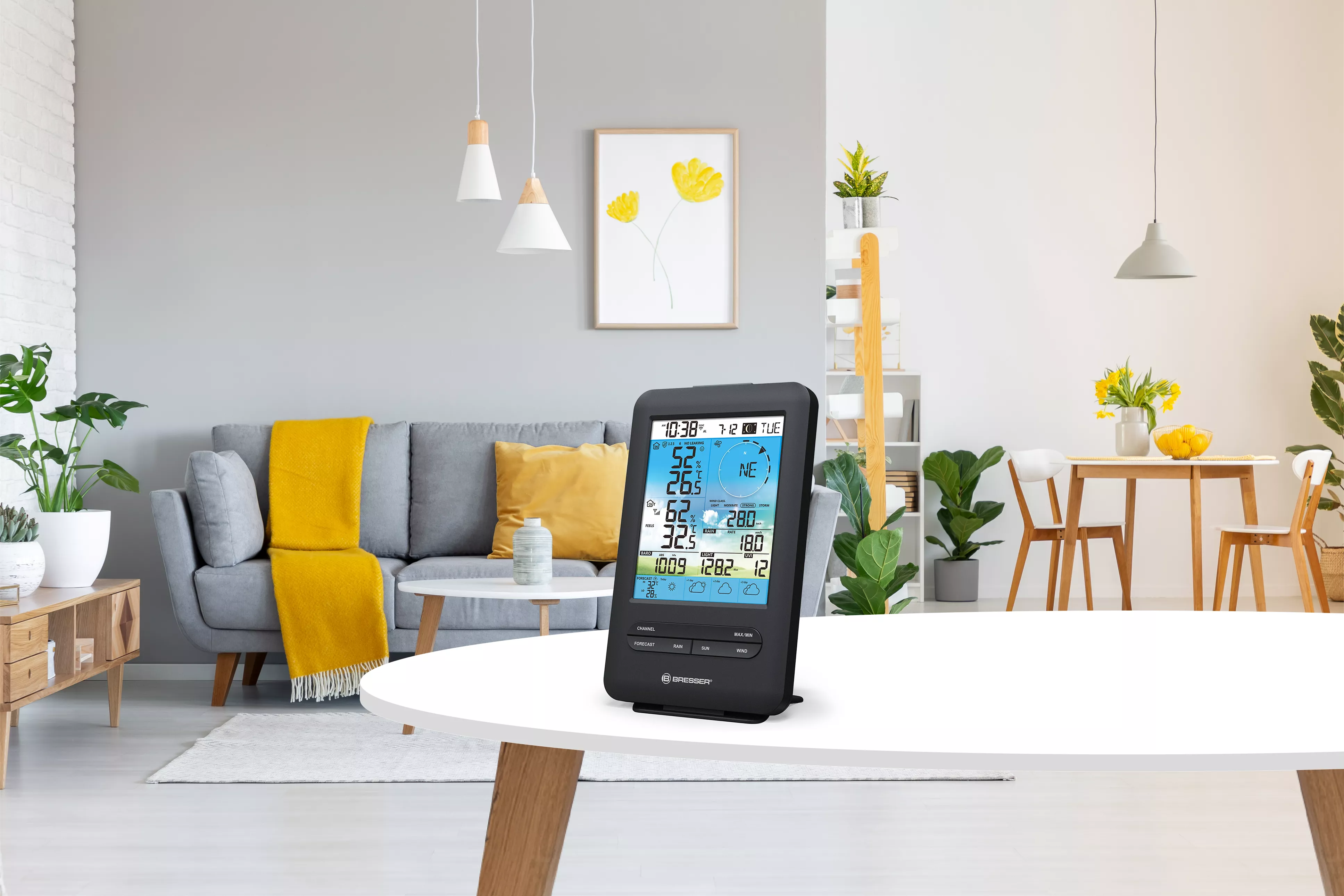 Vier gute Aussichten auch bei wechselhaftem Wetter: Mit der BRESSER 4-Tage 4CAST WLAN-Wetterstation mit 7-in-1-Sensor erleben Sie regen-, sturm- und gewittertechnisch keine Überraschungen mehr. Denn mit der WLAN-Verbindung zieht sich die Wetterstation für Ihre 4-Tages-Wettervorhersage über die Plattform ProWeatherLive alle nötigen Daten - inklusive Hoch-, Tieftemperatur und Niederschlagswahrscheinlichkeit. Allerdings ist Wetter so viel mehr als das eine Symbol. Die meteorologischen Details besorgt darum der 7-in-1-Funksensor mit Temperatur, Luftfeuchtigkeit, Windgeschwindigkeit, Windrichtung, Niederschlagsmenge, UV-Level und Lichtintensität. Und sendet alles mit bis zu 150 m Reichweite ganz übersichtlich auf das stylishe Farbdisplay der Basisstation!