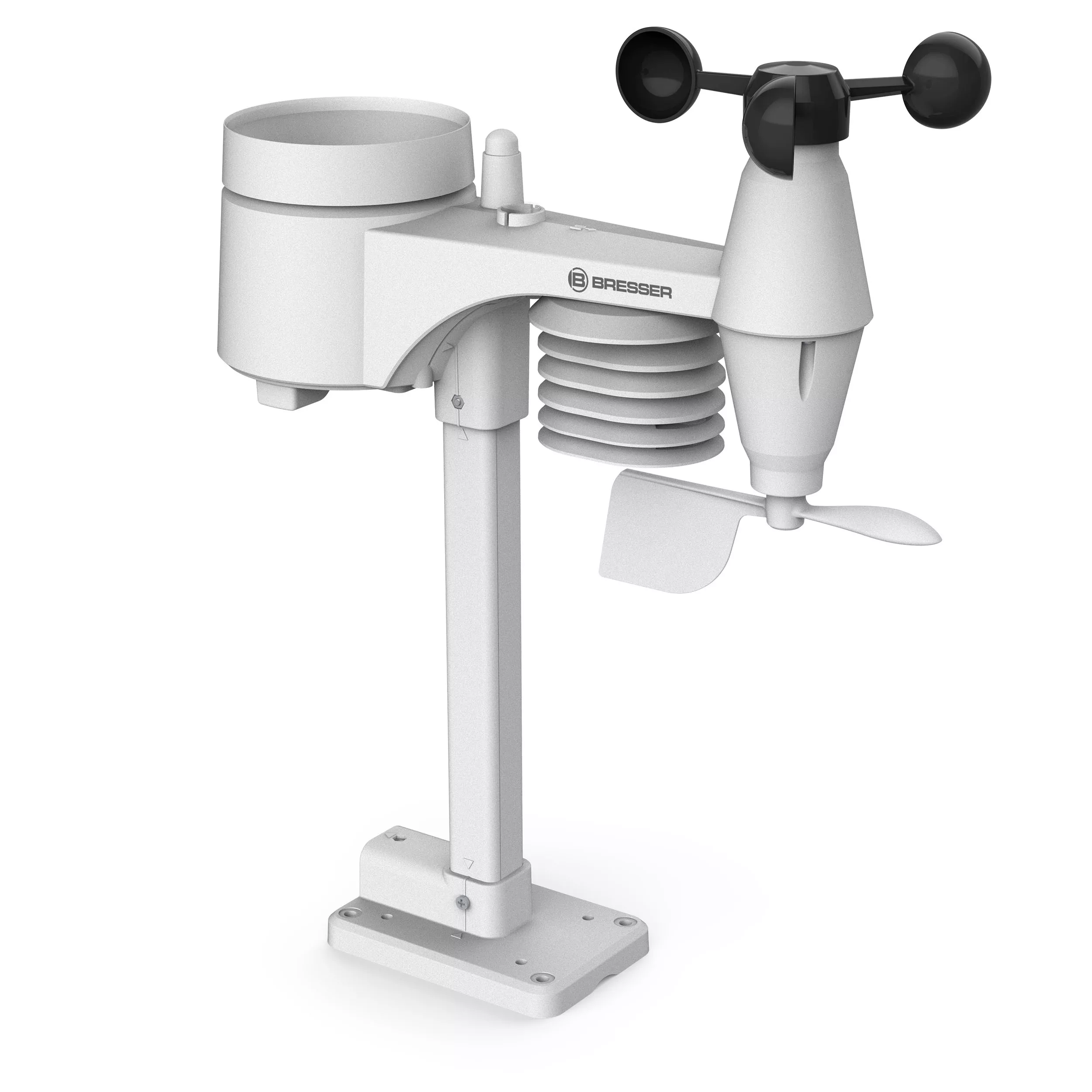Die neue BRESSER 5-in-1 Comfort Wetterstation mit Farbdisplay kombiniert in einzigartiger Weise eine kompakte Bauweise mit einem umfassenden Informationsdienst. Der in seinem Design sehr kompakt gestaltete multifunktionale Außensensor lässt sich äußerst platzsparend an beinahe jedem Ort aufstellen. Eine Rohrschelle und Schrauben für das Anbringen an Masten (Rohrdurchmesser ca. 25-33 mm) sowie ein Standfuß für die ebene Montage sind im Lieferumfang bereits enthalten!