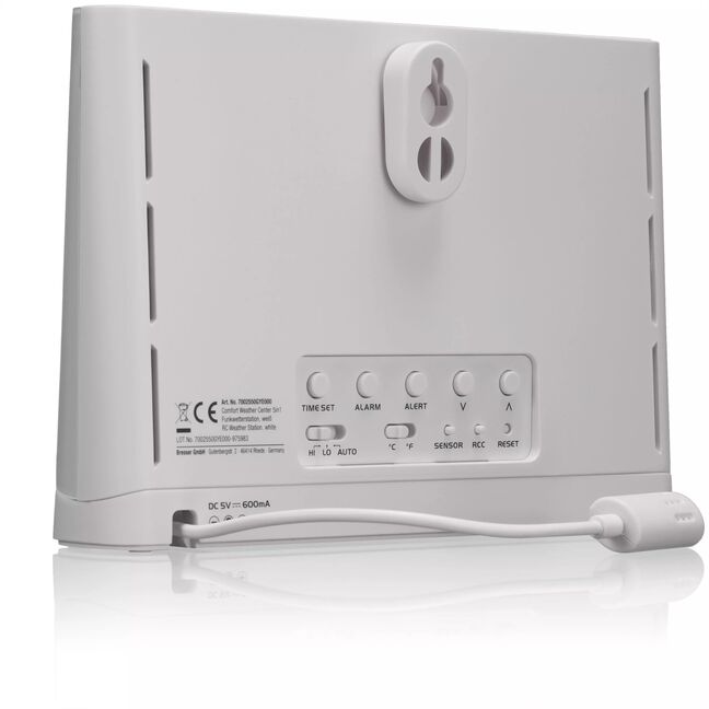Der 5-in-1 Außensensor übermittelt zuverlässig Messwerte für die Windgeschwindigkeit, Windrichtung, Luftfeuchtigkeit, Temperatur und Niederschlagsmenge an die Basisstation. Auf dem klar strukturierten Display der Basisstation lassen sich nicht nur diese Werte, sondern auch eine Vielzahl von Historie-Daten ablesen. Letzteres ermöglicht die interne Speicherung und Auswertung der Messdaten über einen Zeitraum von 24 Stunden. Aus den gesammelten Messdaten errechnet die Wetterstation eine sehr verlässliche lokale Wettertrend-Vorhersage für die kommenden 12 Stunden, die im Display durch sechs grafische Symbole dargestellt wird.