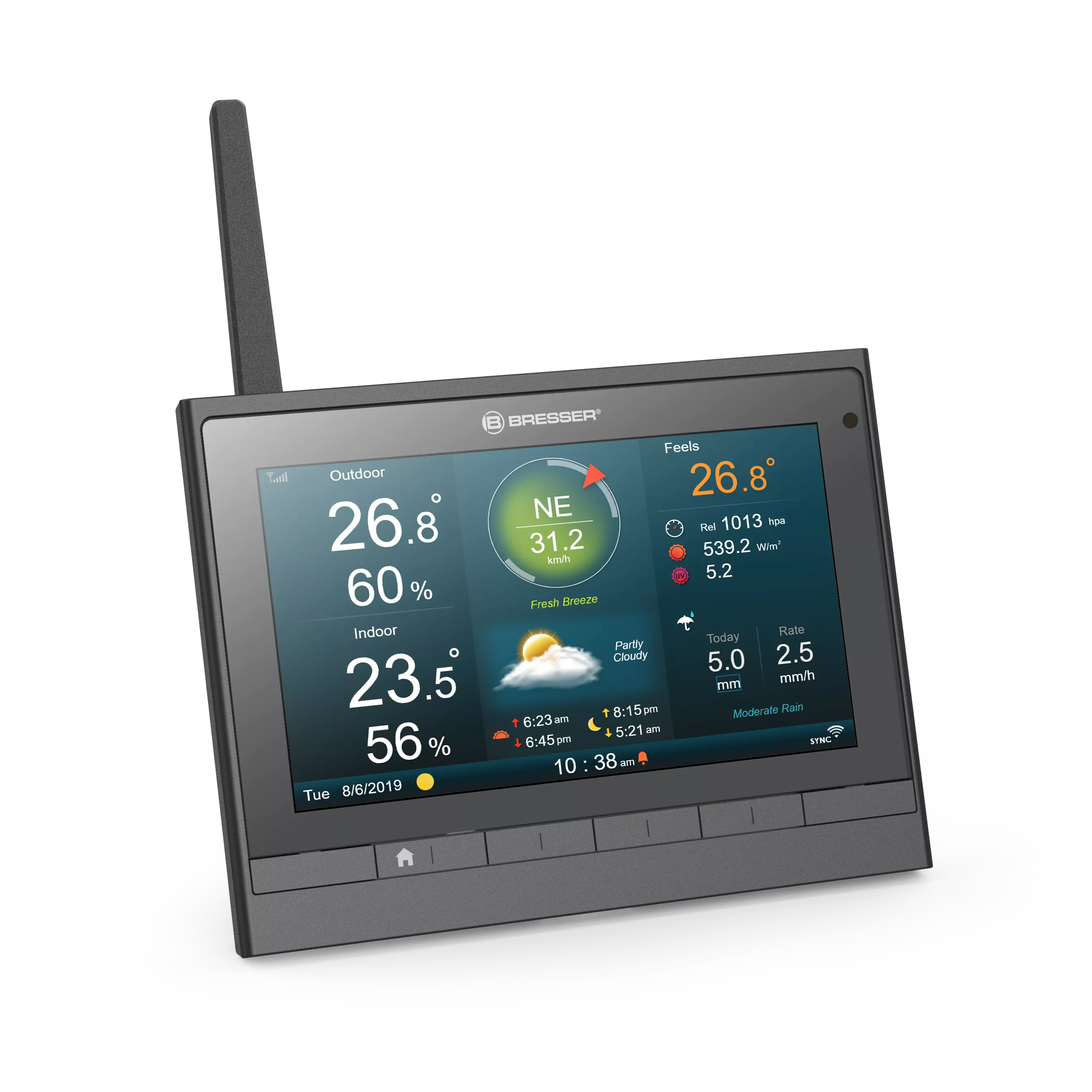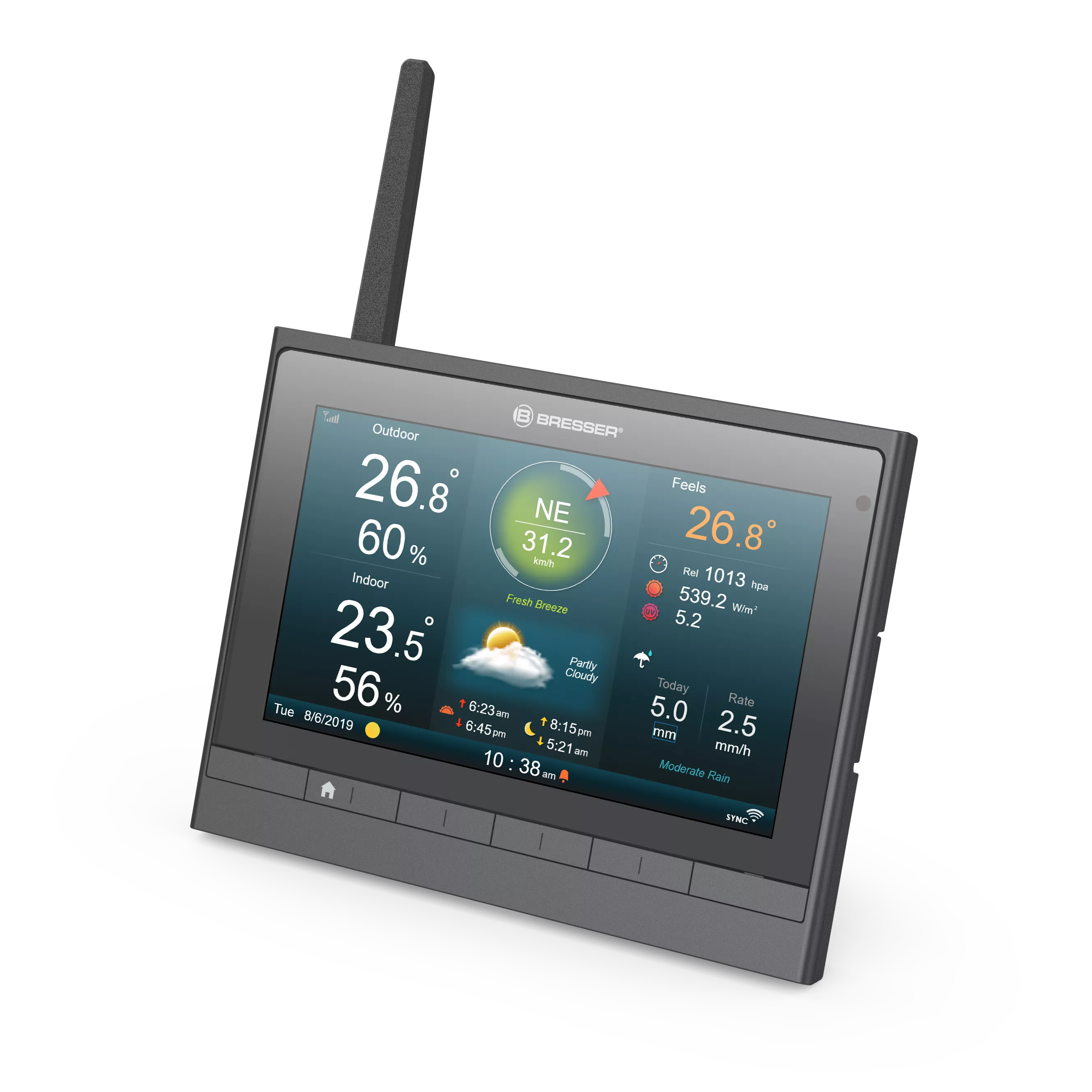Möchten Sie mit Ihren selbst gemessenen Wetterdaten auch Ihren Nachbarn zum Wetterüberblick verhelfen? Oder Brauchen Sie eine Ersatz-Basisstation, weil Ihr Gerät den letzten Umzug oder das ausgelassene Fangenspielen der Kinder nicht heil überstanden hat? Ganz gleich, ob Erweiterung oder Ersatzteil - holen Sie sich alle Funktionen Ihrer vorhandenen BRESSER MeteoChamp HD WLAN-Wetterstation auch mit dieser Basisstation blitzschnell auf den großen 17,8-cm-Bildschirm. Und der weiß wie gewohnt mit seinen unterschiedlichen Anzeige-Modi zu begeistern. Dabei erscheinen die Daten von bis zu 7 Funksensoren (nicht im Lieferumfang enthalten) z. B. zur Messung von Pool- oder Bodentemperatur übersichtlich auf der Bildfläche.