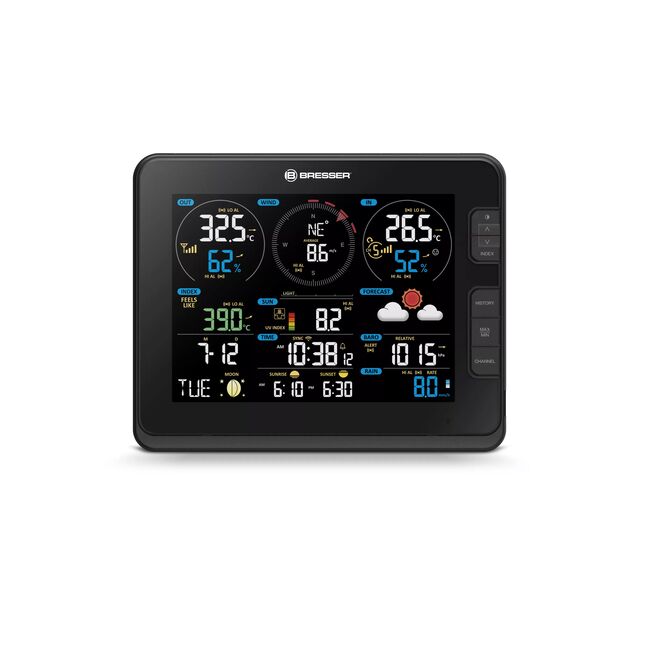 Freuen Sie sich mit dieser passenden Basisstation auf ein hochwertiges Gerät mit allen praktischen Funktionen Ihrer BRESSER Profi WLAN Wetterstation.