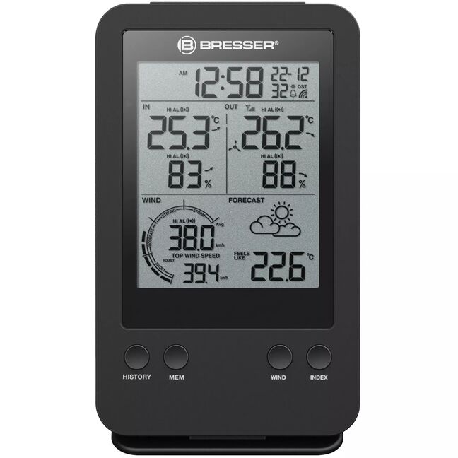 Noch mehr Überblick über Wind und Wetter: Mit dieser zusätzlichen Basisstation für den BRESSER 3-in-1 Profi Windmesser profitieren Sie an einem weiteren Standort von den Messdaten Ihres professionellen Anemometers. So empfängt diese Basisstation per Funk über eine Entfernung von bis zu 150 m alle Messungen Ihres 3-in-1 Außensensors zur Windgeschwindigkeit, Außentemperatur und -luftfeuchtigkeit. Aber auch die inneren (Mess-)Werte zählen: Darum ermittelt der integrierte Sensor zusätzlich die Innentemperatur und -luftfeuchtigkeit in dem Raum, in dem Sie die Basisstation platziert haben. Die perfekte Unterstützung zur Schimmelvorbeugung und Vermeidung von zu trockener Luft!