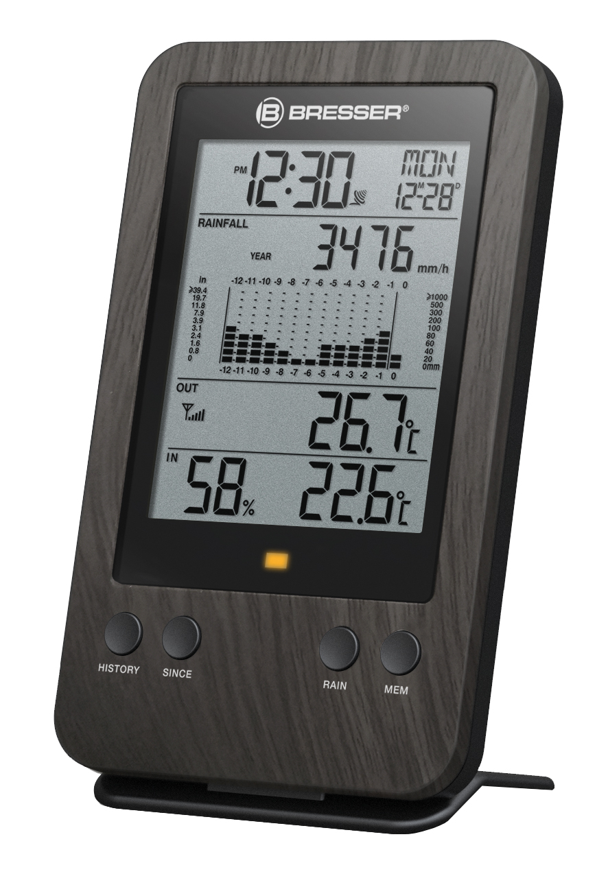 Mit der BRESSER Zusatzbasisstation geben Sie den Messdaten Ihres bereits vorhandenen WTW Profi-Regenmessers mehr Raum. Denn natürlich sollen alle im Haushalt etwas von den Infos zu aktueller lokaler Niederschlagsmenge, Außen- und Innentemperatur sowie Innenluftfeuchtigkeit haben. Und mit der DCF-Funkuhr mit Datums- und Wochentaganzeige ist schließlich jeder zur richtigen Zeit am richtigen Ort. Also Standort: Gemeinschaftsraum, z. B. Wohnzimmer! Doch die Regenmesser-Basisstation kann so viel mehr. Also nutzen Sie Ihre Messdaten doch einfach in mehreren Räumen!