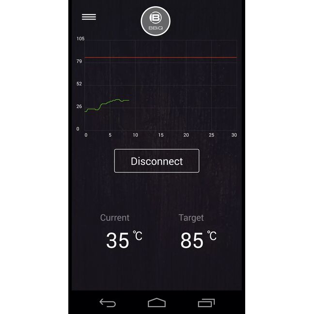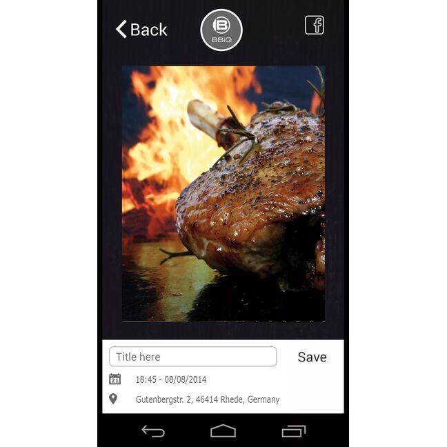 Über die kostenlose App "BRESSER BBiQ" (Android* und Apple iOS**) kann das BRESSER Grill Thermometer BT4 verwaltet und die empfangenen Daten angezeigt werden. Darüber hinaus lassen sich für verschiedene Fleischsorten (z.B. Rind, Hühnchen, Schwein, usw.) unterschiedliche Garpunkte über die Kerntemperatur des Fleisches programmieren (z.B. well done, medium, rare). Bei Erreichen der gewünschten Temperatur/des Garpunktes ertönt ein Alarm am Thermometer und auf dem verbundenen mobilen Endgerät. Eine grafische Anzeige veranschaulicht zudem den Verlauf der Gartemperatur.