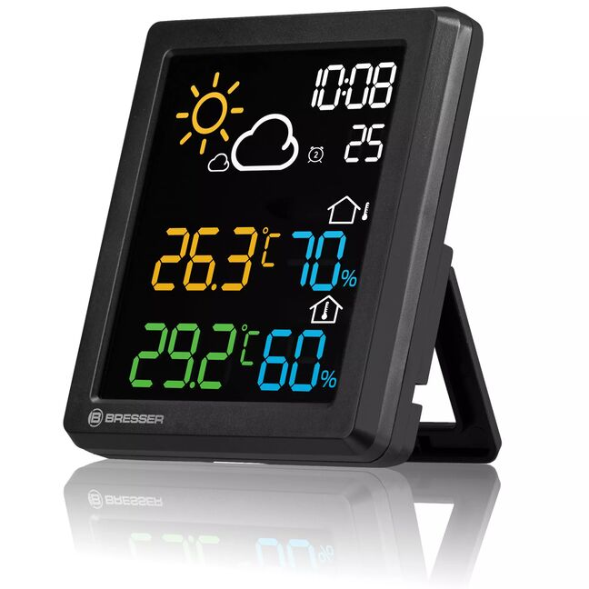 Behalten Sie mithilfe der BRESSER MeteoCast Pico Farbwetterstation das Klima innen und außen stets im Auge.