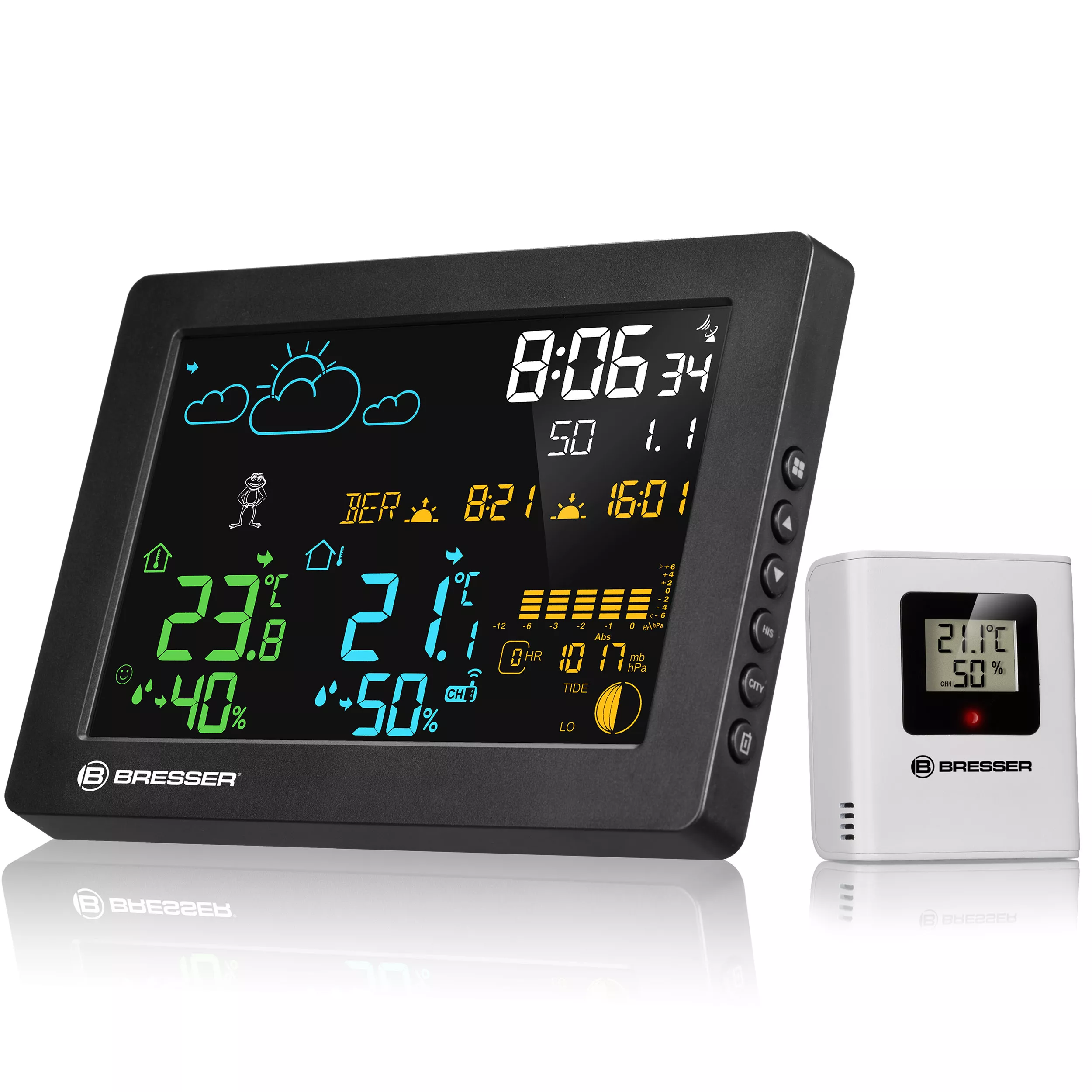 Zuverlässige Messwerte und nützliche Funktionen – holen Sie sich mit der BRESSER MeteoTemp Baro HZ Farbwetterstation Ihren Alltagshelfer für Wetter, Raumklima und mehr.