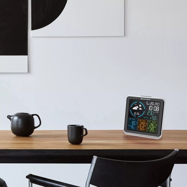 Freuen Sie sich mit der BRESSER Quadro Individio Wetterstation auf eine zuverlässige Wetterprognose und 4 Messwerte zu Temperatur und Luftfeuchtigkeit.