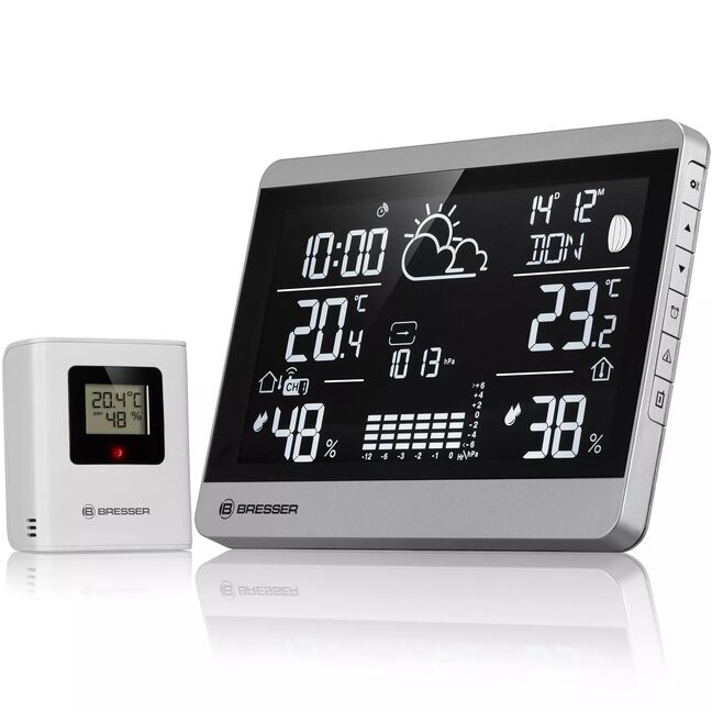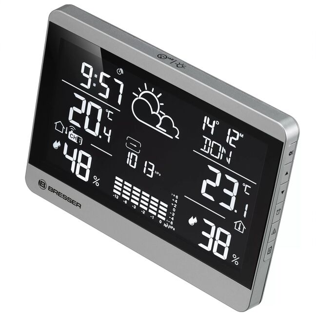 Abgesehen vom Wetter brauchen wir natürlich auch im Innenbereich das richtige Klima, um uns wohlzufühlen. Darum misst die BRESSER Funk-Wetterstation neben der Außentemperatur und -luftfeuchtigkeit auch die Werte im Haus. So können Sie das Raumklima optimal steuern und für eine angenehme Atmosphäre in Ihrem Zuhause, aber auch im Büro und Co. sorgen. Perfekt, um Heiz- und Lüftungsgewohnheiten anzupassen.