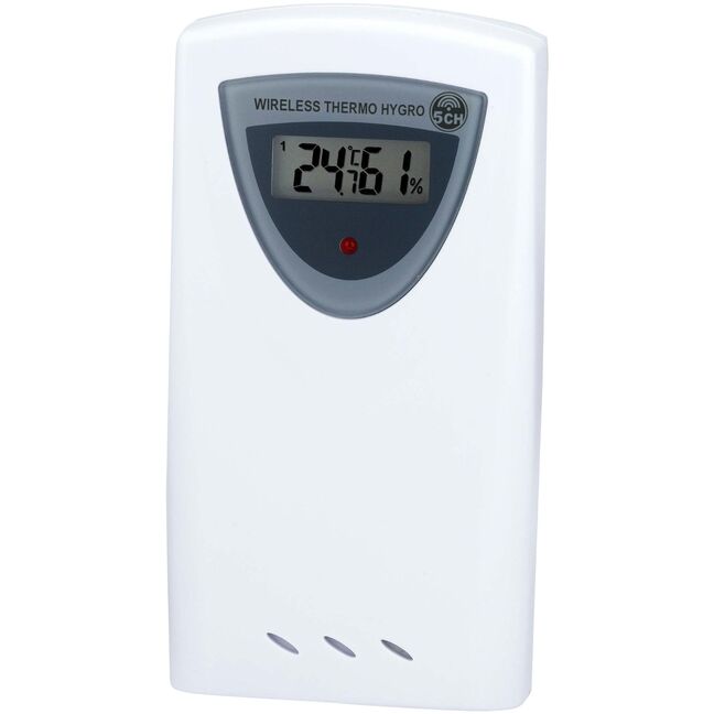 Der BRESSER Thermo/Hygro-Funksensor mit fünf einstellbaren Funkkanälen, passend für viele BRESSER Wetterstationen mit 433 MHz Übertragungsfrequenz.