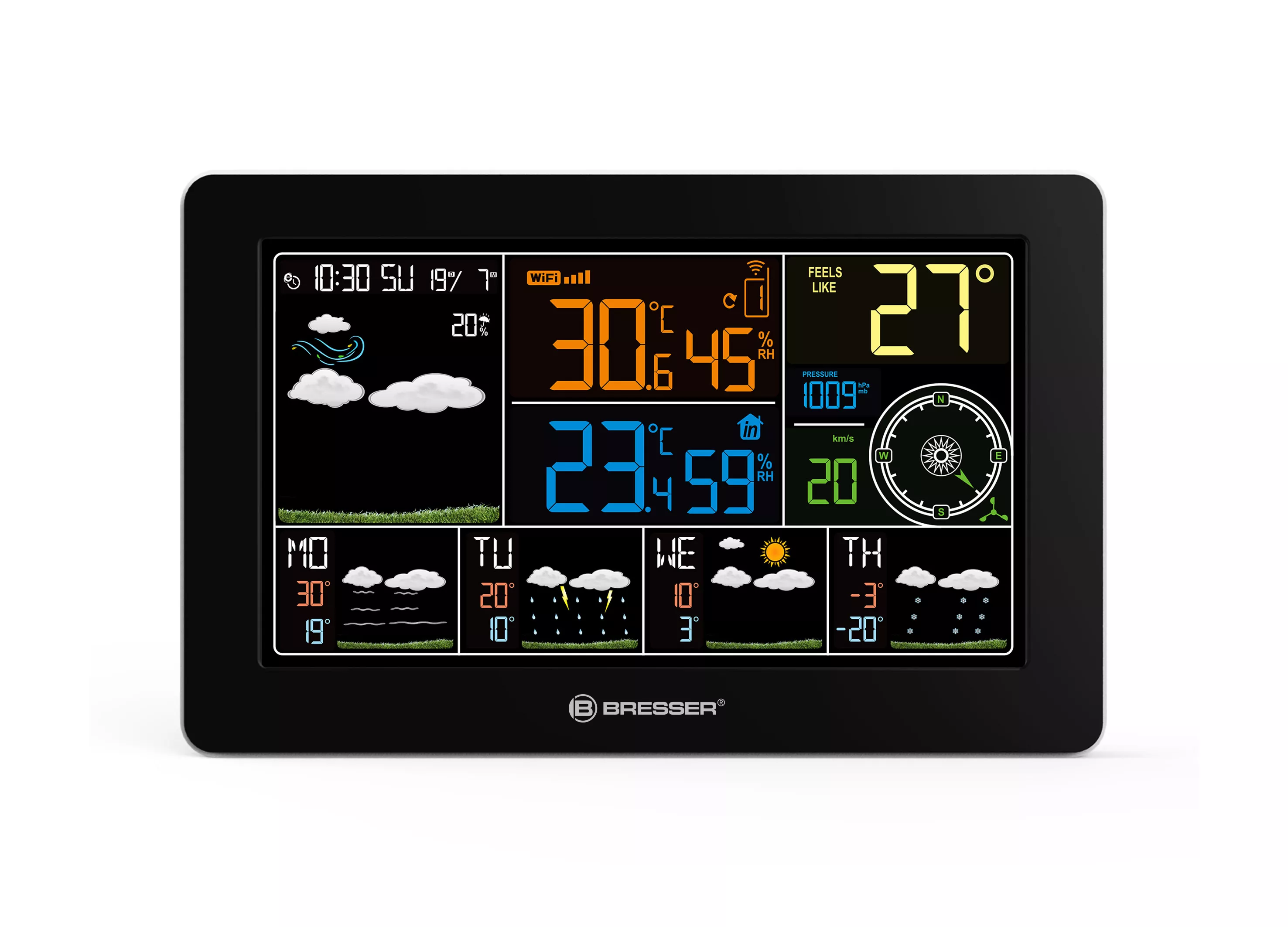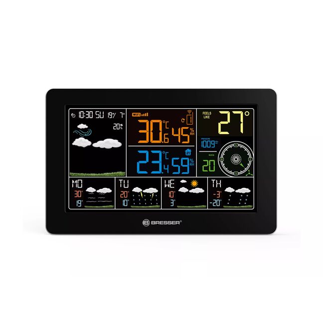 Die BRESSER 4CAST WLAN Funkwetterstation liefert neben einer 4-Tages-Vorhersage nicht nur zahlreiche weiterer meteorologischer Daten. Mit ihrem schlichten aber eleganten Design ist sie auch ein Schmuckstück für jede Wohnung.