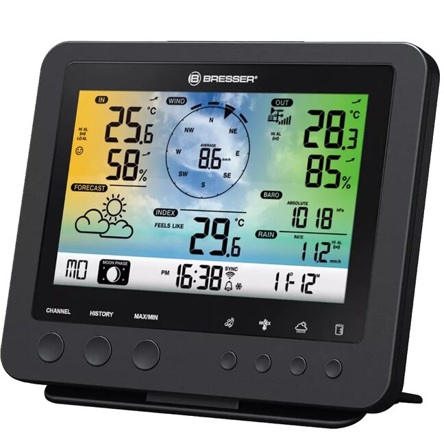 Holen Sie sich mit der BRESSER WLAN-Farbwetterstation mit 5-in-1-Profi-Sensor Ihren eigenen Wetter- und Raumklima-Experten nach Hause.
