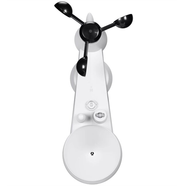 - Misst Temperatur, Luftfeuchtigkeit, Windgeschwindigkeit, Windrichtung, Niederschlagsmenge, UV-Level, Lichtintensität