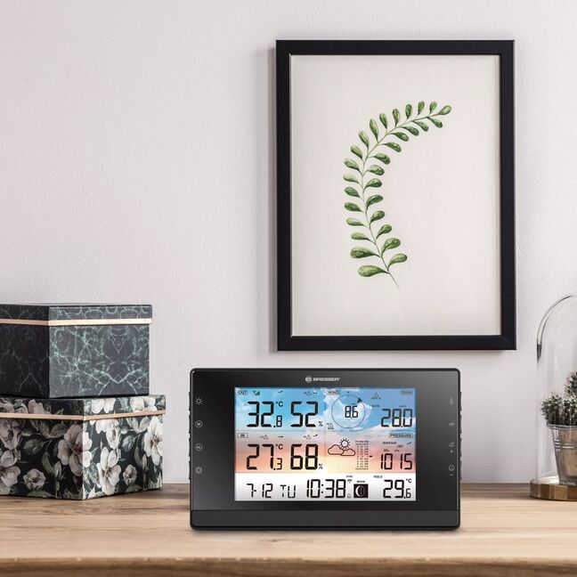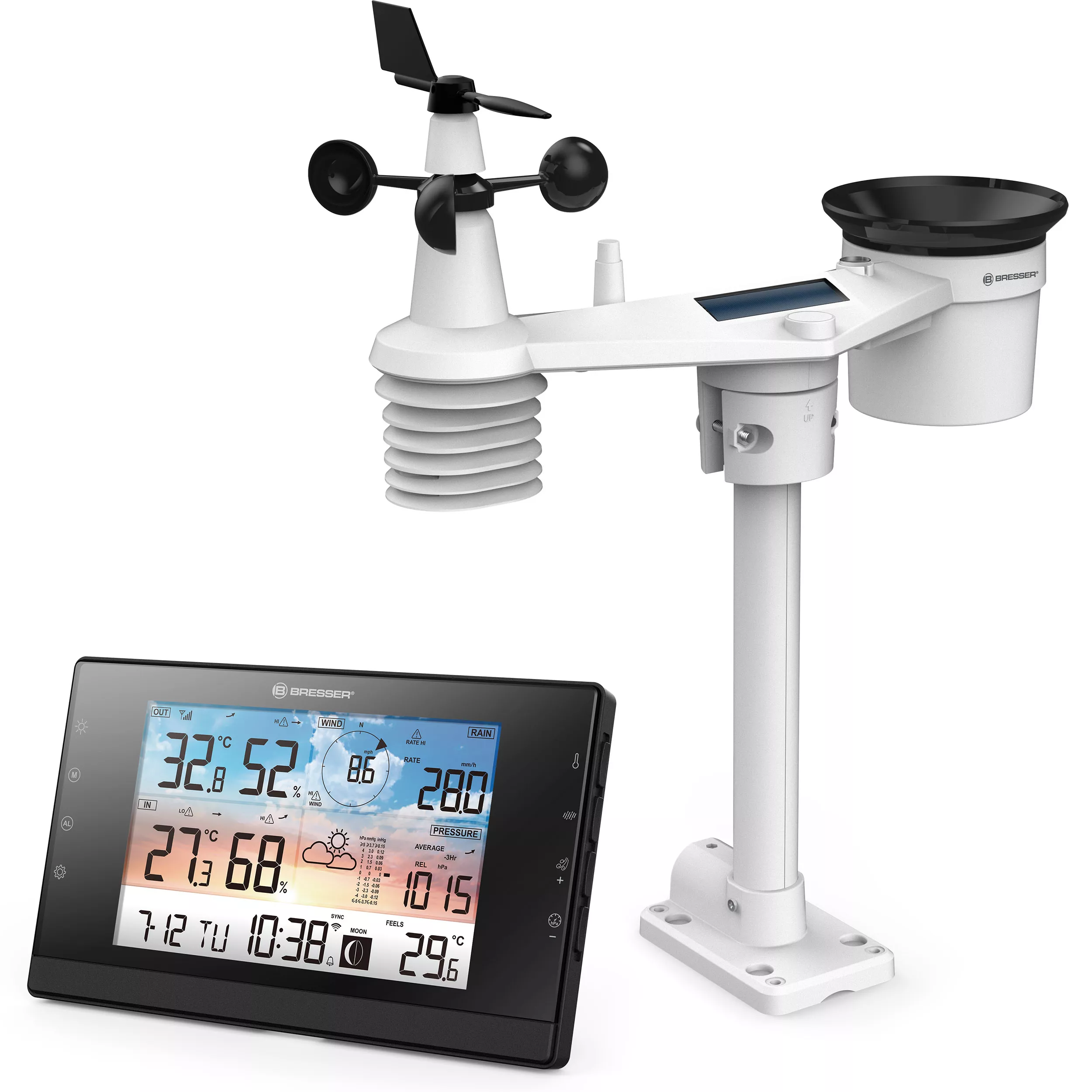 Freie Sicht aufs Wetter – behalten Sie mit der BRESSER WLAN-Wetterstation WSC mit 5-in-1-Multi-Sensor auf dem eleganten Display oder online den meteorologischen Durchblick.
