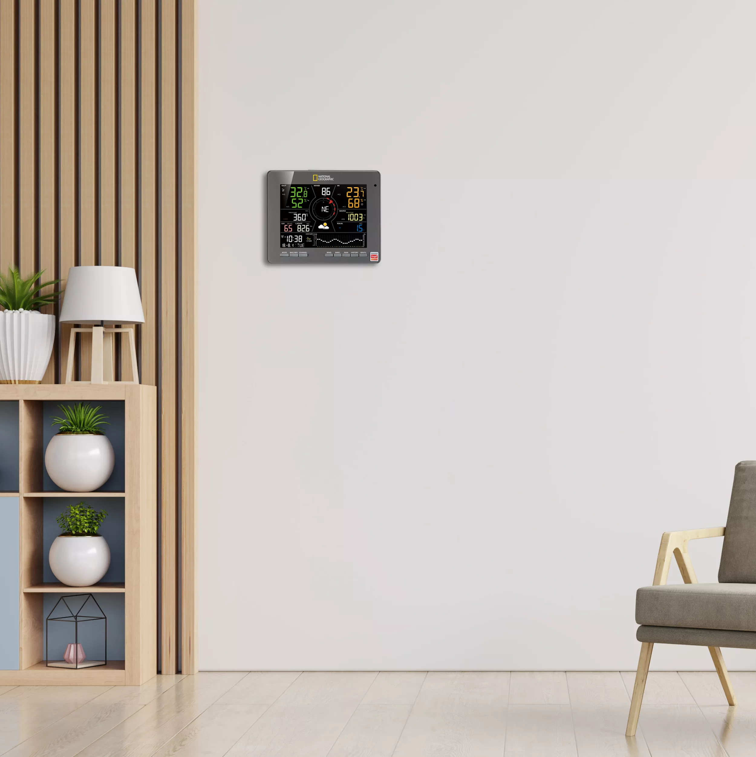 Die NATIONAL GEOGRAPHIC Smarte Tuya-Wetterstation mit 7-in-1-Sensor fügt sich nahtlos in Ihr vorhandenes Tuya Smart-Home ein, um Ihnen den Alltag zu erleichtern. Einmal eingerichtet, kann sie bei Bedarf andere Tuya-Geräte (nicht enthalten) in Ihrem Zuhause auslösen. Außerdem halten Sie die zuverlässige Wettervorhersage sowie umfangreiche Daten zu Luftdruck, Temperatur, Niederschlag, Luftqualität und Co. stets top-informiert. Zusätzlich liefern Ihnen die Balkendiagramme auf einen Blick alle wichtigen Infos zur Wetterentwicklung.