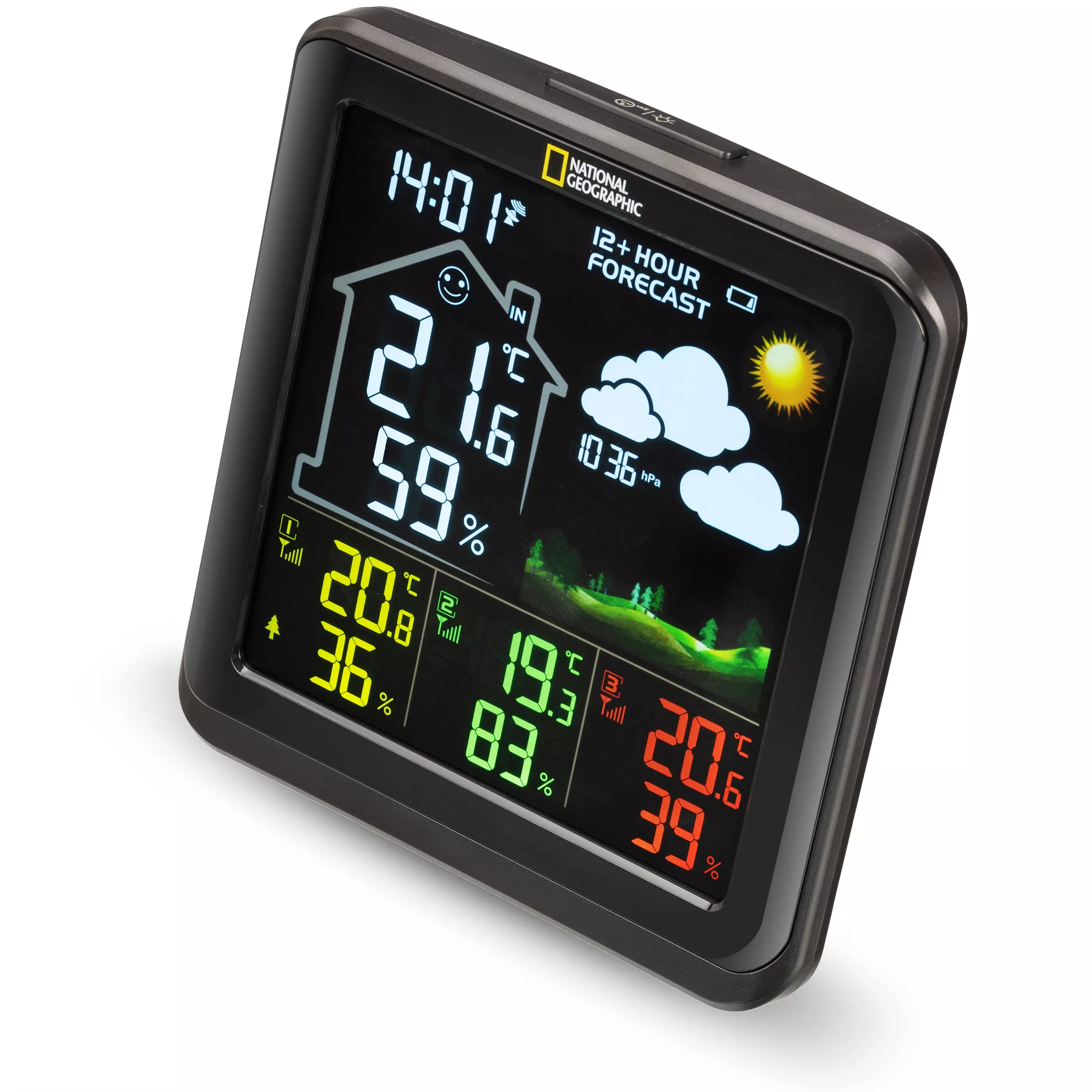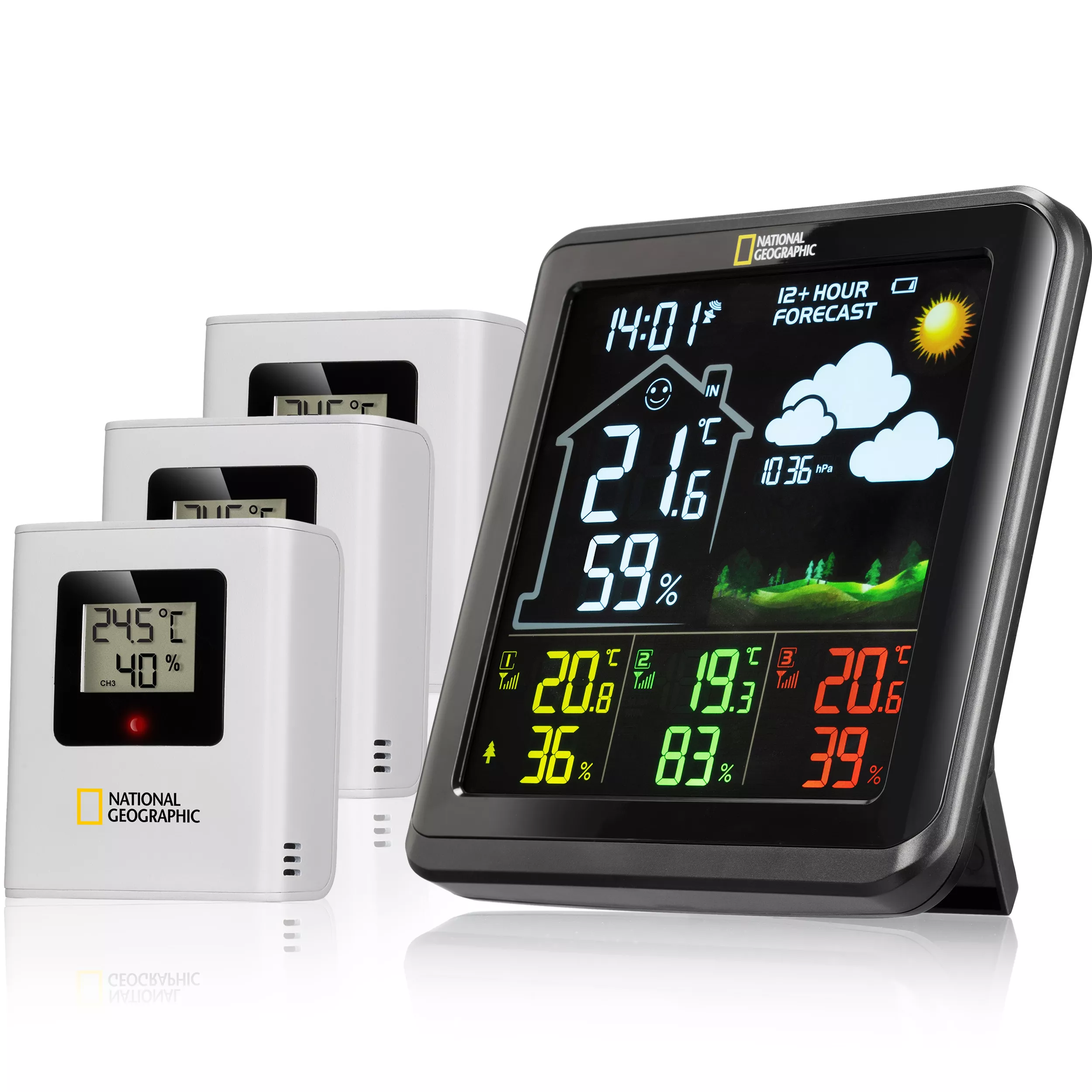 NATIONAL GEOGRAPHIC VA Farb-Wetterstation mit 3 Außensensoren, schwarz