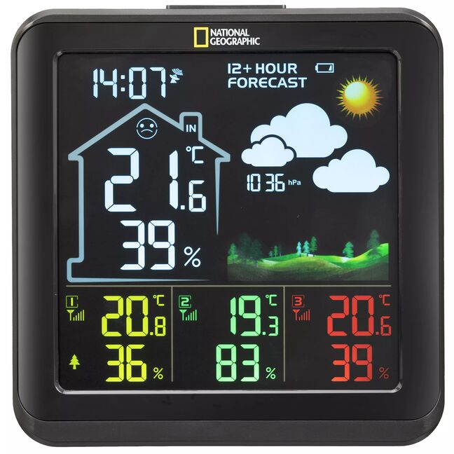 Produktinformationen "NATIONAL GEOGRAPHIC VA Farb-Wetterstation mit 3 Außensensoren, schwarz"