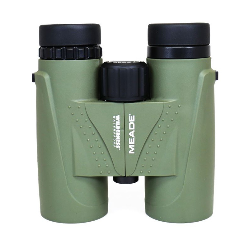 Ferngläser der Wilderness-Serie von Meade, das sind robuste, wasserdichte Ferngläser mit mehrfach vergüteter, beschlagfreier und stickstoffgefüllter Optik aus Bak-4-Glas. Das ansprechende grüne Gehäuse liegt dank der Gummiarmierung sicher in der Hand. Die Zentralfokussierung und hochdrehbaren Augenmuscheln sorgen für eine unkomplizierte und einfache Bedienung: Ein hochwertiges Fernglas, ideal für unterwegs!