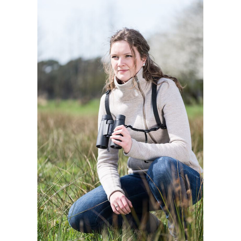Widriges Wetter und unwegsames Gelände – in der Natur geht es schon mal rau zu. Darum ist das Fernglas mit einer gummierten, schmutzabweisenden Oberfläche versehen und liegt somit griffig in der Hand. Sie haben einen Ort gefunden, an dem sich längere Beobachtungen lohnen? Dann befestigen Sie den Feldstecher über das Stativanschlussgewinde ganz leicht an einem Stativ. Auch für den sicheren Transport durch Wald und Wiese ist stets gesorgt: Das Fernglas bringt einen stabilen Trageriemen und eine Tasche mit.