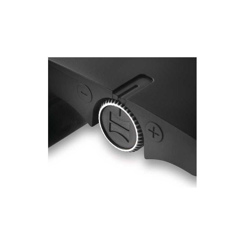 Elegantes Schwarz dominiert durchweg das raffinierte Fernglas. Armierungen aus feinem, widerstandsfähigem Kunstleder treten in ein spannendes Wechselspiel mit dem Mattschwarz des Gehäuses. Optische Akzente setzen zudem die schwarz glänzende Applikation auf dem Steg, das Fokus-Rad aus Metall und das dezente Logo des Markenherstellers.