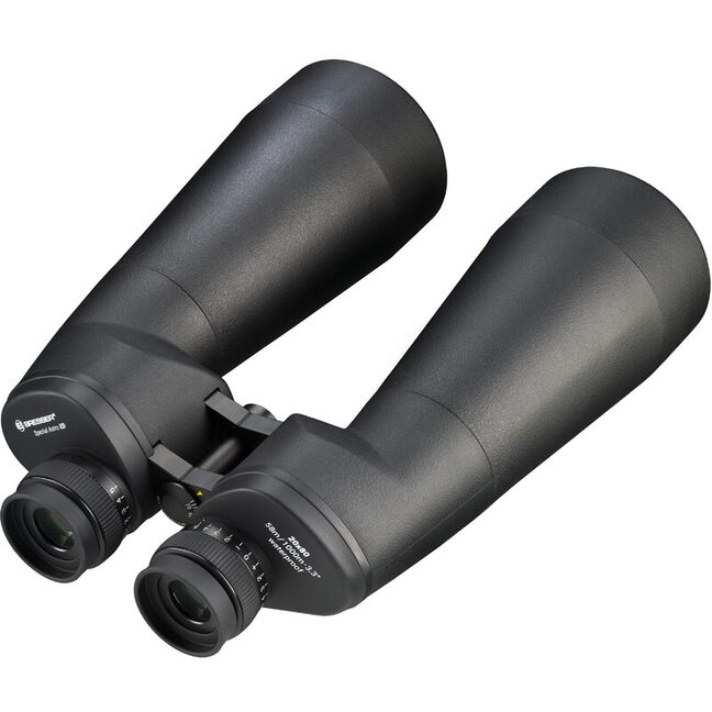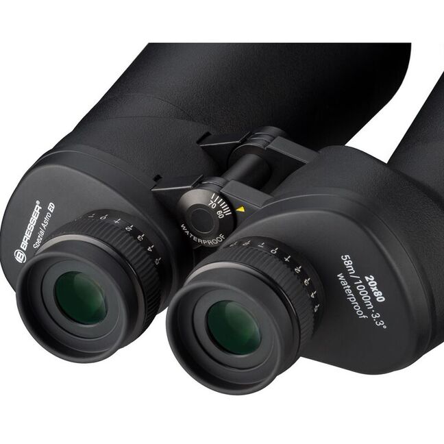 Die Einzelokularfokussierung ermöglicht es, das Fernglas einmal einzustellen und dann auf alle am Sternenhimmel relevanten Entfernungen ein scharfes Bild zu erhalten. Dioptrienausgleich und umstülpbare Gummiaugenmuscheln bieten auch Brillenträgern die Möglichkeit, das Sehfeld dieser Optik optimal zu nutzen.