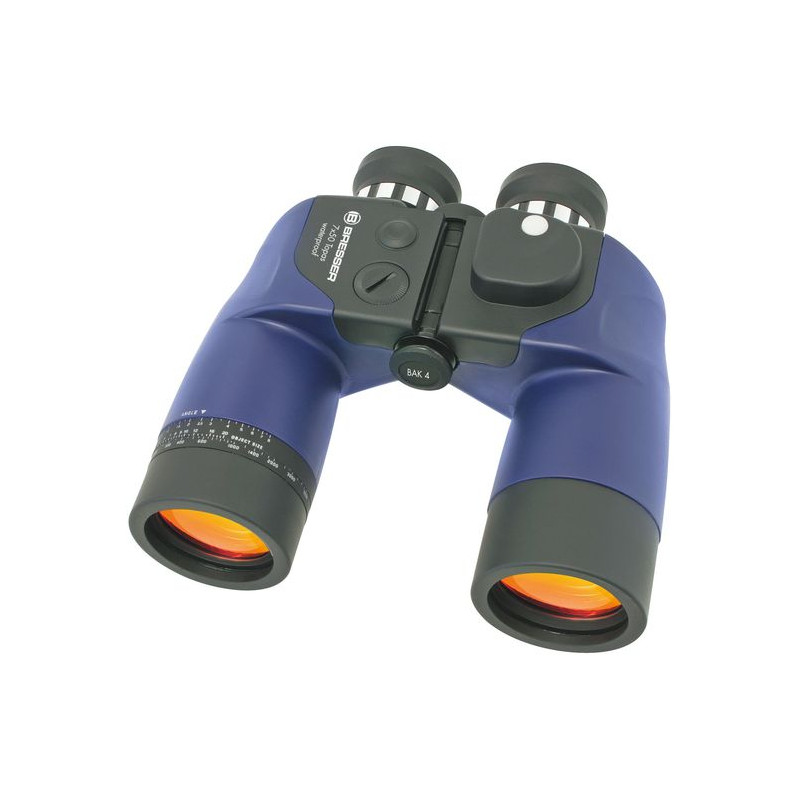 Das Topas 7x50 ist ein klassisches Marinefernglas in Porroprismen-Bauweise. Die Optik bietet gute Dämmerungsleistung und die 7-fache Vergrößerung hat sich bei dieser Anwendung als Standard bewährt. Außerdem verfügt das Topas über einen integrierten und beleuchteten Magnetkompass, sowie eine Strichplatte zur Ermittlung von Größen oder Entfernungen, welche von einer Ringskala am Objektivstutzen zur Berechnung -im Handumdrehen unterstütz wird. Das Fernglas ist wasserdicht; durch seine ergonomische Gummiarmierung liegt es gut in der Hand und ist auch gegen Stöße geschützt.
