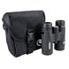 Das Fernglas kommt nicht nur mit einer stabilen Transporttasche, sondern auch mit Trage- und Schultergurt.