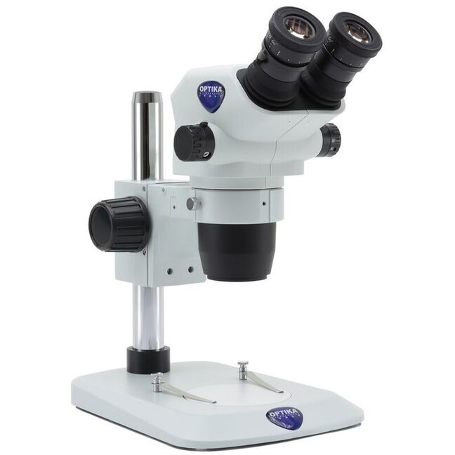 OPTIKA SZO Series represents a very compact Greenough stereo microscope with 6.72:1 zoom and 110mm working distance for professional environments and laboratories which allows the observation of samples without any particular preparation, yet producing incredibly crisp and detailed images. An extensive range composed by binocular and trinocular heads with 23mm field of view for a very wide peripheral view and comfortable posture even after several hours of operation. Trinocular heads enable simultaneous eyepiece and camera observation, opening new horizons and enabling a very practical and comfortable operation. Discover how easily an enhanced accuracy and repeatability can be achieved thanks to the click-stop zoom for precise and repetitive observations. An extremely wide stand selection gives the chance to create tailored stereomicroscope: choose among the several models available to cover every customers’ needs, in terms of illumination (including the state-of-the-art, exclusive X-LED³ incident light of 3.6W on selected models), arm extension (including overhanging stands) and focusing system. Special external illuminators and moving/heating stages are also available for specific applications. Keep in my mind the application, always: if you are soldering a printed circuit board, it may be more important to have a long working distance; if you are counting items, then a large field of view will be of great assistance.