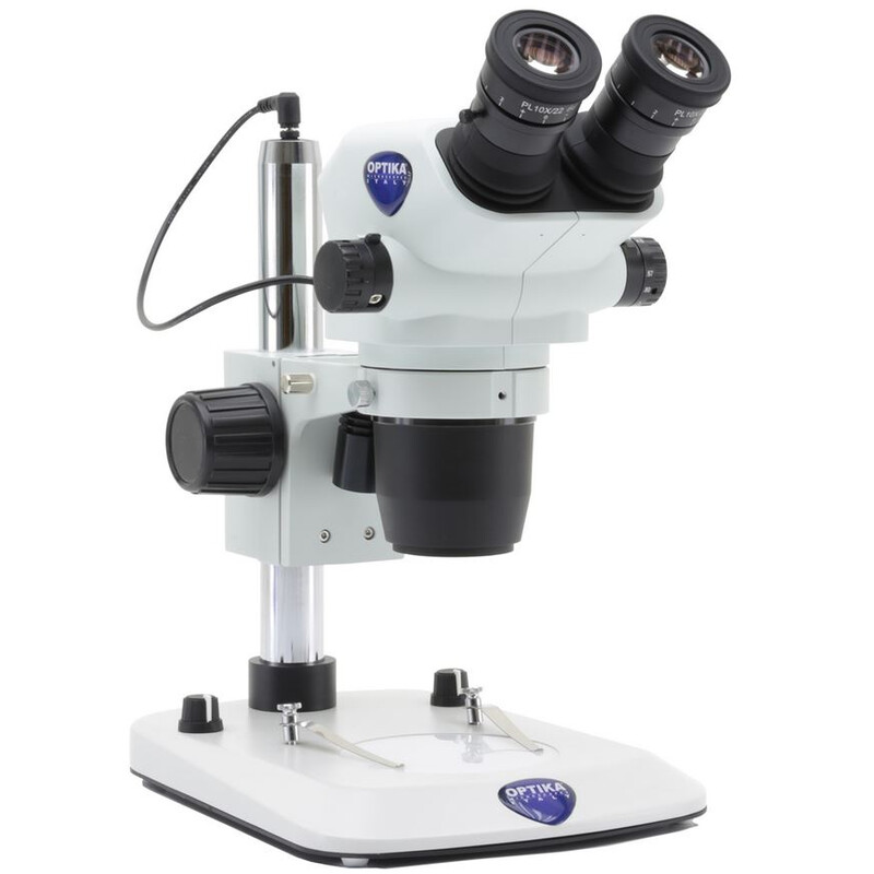 OPTIKA SZO Series represents a very compact Greenough stereo microscope with 6.72:1 zoom and 110mm working distance for professional environments and laboratories which allows the observation of samples without any particular preparation, yet producing incredibly crisp and detailed images. An extensive range composed by binocular and trinocular heads with 23mm field of view for a very wide peripheral view and comfortable posture even after several hours of operation. Trinocular heads enable simultaneous eyepiece and camera observation, opening new horizons and enabling a very practical and comfortable operation. Discover how easily an enhanced accuracy and repeatability can be achieved thanks to the click-stop zoom for precise and repetitive observations. An extremely wide stand selection gives the chance to create tailored stereomicroscope: choose among the several models available to cover every customers’ needs, in terms of illumination (including the state-of-the-art, exclusive X-LED³ incident light of 3.6W on selected models), arm extension (including overhanging stands) and focusing system. Special external illuminators and moving/heating stages are also available for specific applications. Keep in my mind the application, always: if you are soldering a printed circuit board, it may be more important to have a long working distance; if you are counting items, then a large field of view will be of great assistance.