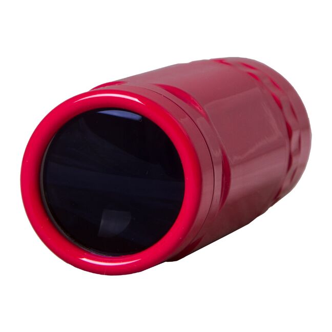 Dieses Modell ist mit einem federleichten, dennoch robusten Kunststoffgehäuse mit glänzender, farbenfroher Lackierung ausgestattet. Dank sorgfältiger Verarbeitung und seinem griffigen Fokusrad liegt das Fernrohr gut und sicher in der Hand, lässt sich bequem bedienen. Das Gehäuse in kräftigem Rot bringt etwas Farbe in den Alltag, sorgt obendrein dafür, dass sich das Fernrohr schnell wiederfinden lässt, falls es einmal z. B. ins Gras fallen sollte.