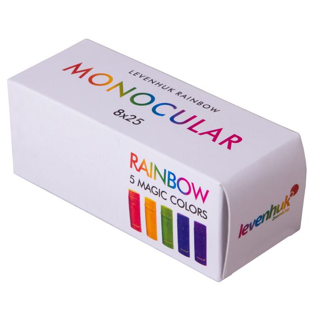 Das Levenhuk-Rainbow-Fernrohr (8x25) ist ein treuerBegleiter bei Sportveranstaltungen, bei kleinen Touren in der Stadt oder großen Touren auf dem Land. Das kleine, leichte optische Instrument, das gerade einmal 100 g auf die Waage bringt, passt in jeden Rucksack, jede Tasche und sogar in die Hosentasche.