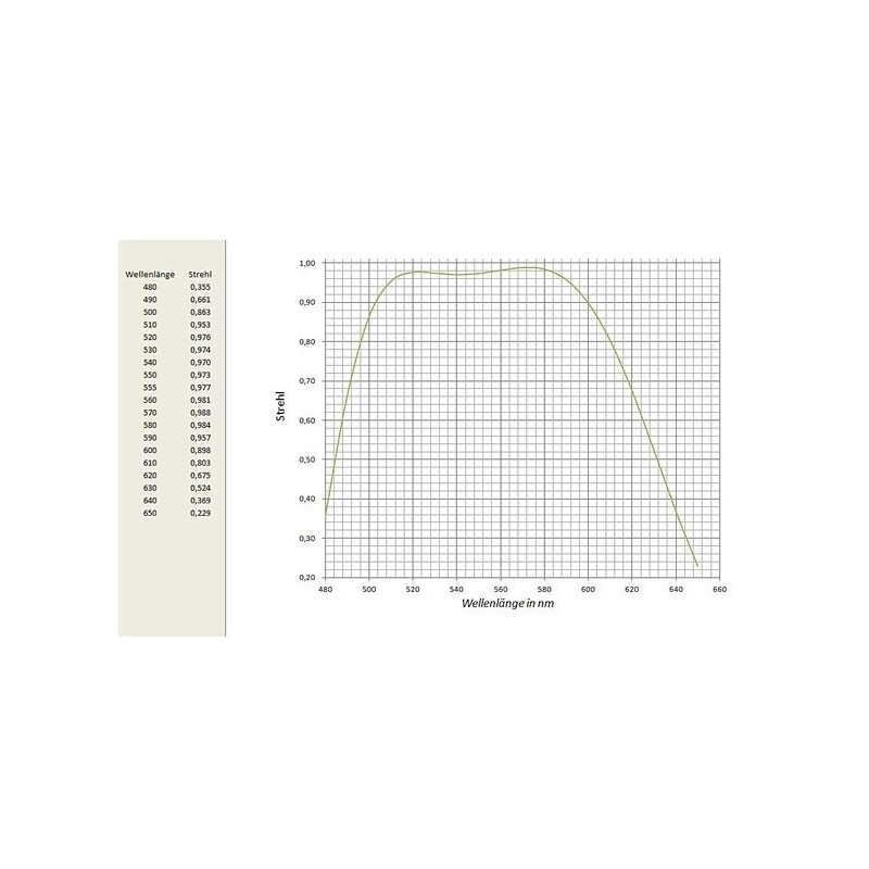 Er verfügt über eine Doublet-Optik mit OHARA FPL 51 ED-Glas. Die andere Linse besteht aus Lanthanum. Diese Kombination führt zu einer optischen Leistung, die weit über dem üblichen in dieser Preiskategorie liegt. Um die typische, hohe Qualität von APM-Teleskopen zu garantieren, durchläuft jede Optik einen interferometrischen Test bei 532nm (grün) vor dem Versand.