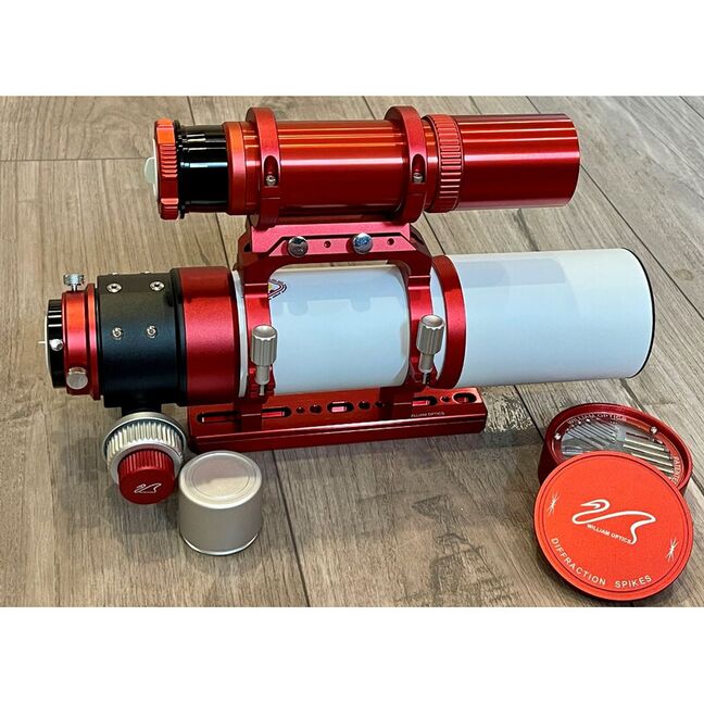• Für die Astrofografie empfehlen wir den Bildfeldebner und Brennweitenreduzierer (Flattener/Reducer) Flat6AIII von William Optics. Die Optik liefert auch für Vollformatkameras ein ebenes Feld mit gleicher Fokuslage. Über die im Handgriff integrierte Prismenschienenaufnahme können sie Ihr Gran Turismo mit einem Guiding Scope ausstatten, das Ihnen als Sucher oder Leitrohr dienen kann.