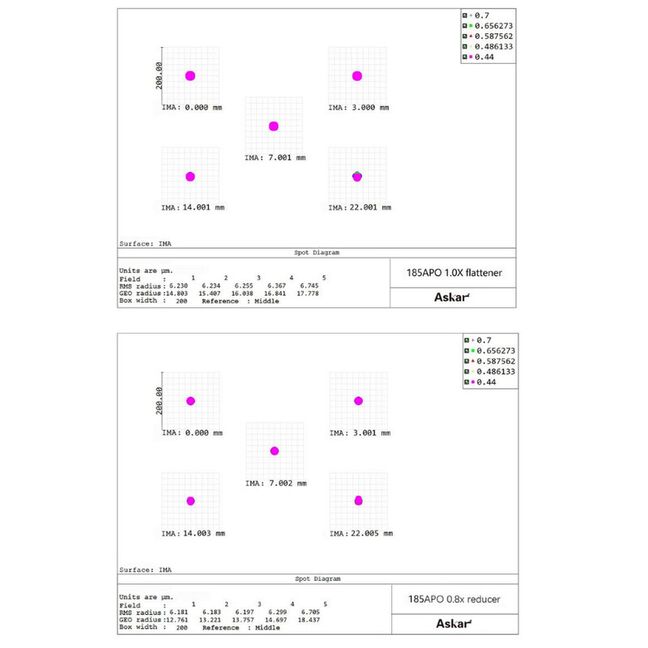 Dieser Askar-APO verwendet mehrere Linsenelemente, um chromatische Aberration zu korrigieren, was zu einer höheren Qualität der Abbildungsqualität führt.