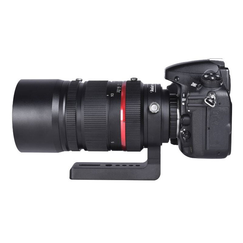 - Der Apo hat an der Kameraseite ein M48x0,75-Anschlussgewinde mit einem Arbeitsabstand von 55 Millimeter bis zur Kamera. Damit können Sie alle gängigen Kameras mit dem geeigneten T-Ring anschließen.