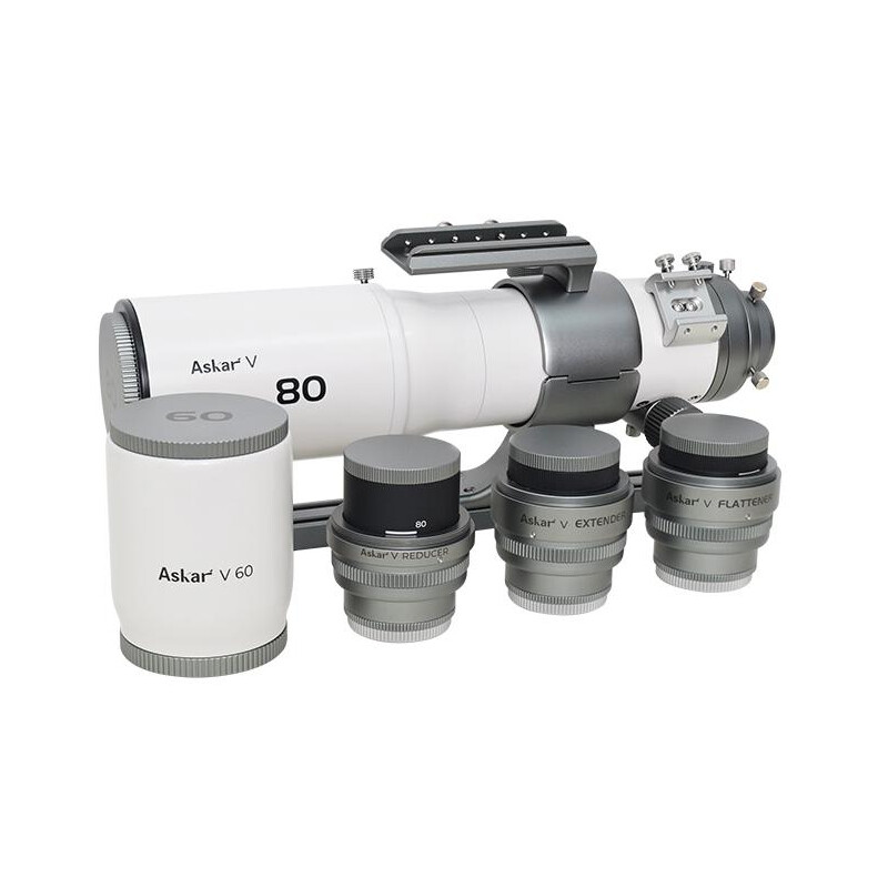 Die austauschbaren Objektive des V60 und des V80 sind beide als Triplet-Apochromaten mit zwei ED-Elementen. Das V60 hat ein Öffnungsverhältnis von f/6 und eine Brennweite von 360 mm, das V80 hat ein Öffnungsverhältnis von f/6,25 und eine Brennweite von 500 mm. Am hinteren Ende befinden sich M48- und M54-Adapter mit eingebautem 2"-Filtergewinde, und das Auflagemaß beträgt 55 Millimeter, was für den Anschluss der meisten DSLR-Kameras ideal ist.
