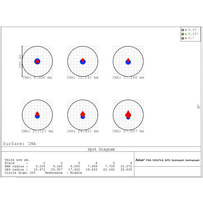 Der ASKAR FRA500 ist ein 5-Element-Apochromat nach Petzval mit 500 mm Brennweite, f/5,6 und 90 mm Öffnung. Im Objektiv sind 2 ED-Gläser verbaut für eine gute Korrektur des Farbfehlers. Der Apo ist korrigiert für Kameras bis Vollformat.