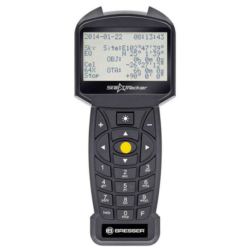 Das GoTo-System für die EXOS-2 von Bresser hilft auch Einsteigern, in wenigen Minuten Himmelsobjekte zu beobachten, die ohne GoTo nur sehr schwer oder gar nicht aufzufinden sind. Einfach per Knopfdruck sucht das GoTo-System für Sie Planeten, Nebel oder Galaxien und positioniert das Teleskop vollautomatisch (mit einer maximaler Geschwindigkeit von 2° pro Sekunde). Die Datenbank enthält über 100.000 Objekte. Die LCD-Anzeige mit anpassbarer Hintergrundbeleuchtung bietet einen komfortablen Überblick über alle Funktionen. Die fest eingebaute Taschenlampe kann Ihnen dabei behilflich sein, Sternkarten oder Zubehörteile zu betrachten.