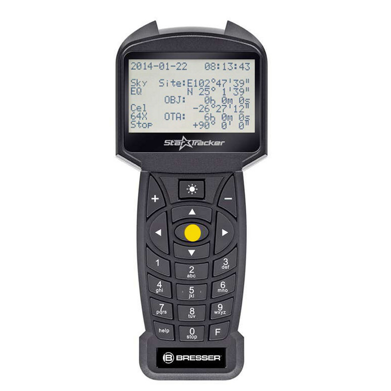 Das GoTo-System für die EXOS-2 von Bresser hilft auch Einsteigern, in wenigen Minuten Himmelsobjekte zu beobachten, die ohne GoTo nur sehr schwer oder gar nicht aufzufinden sind. Einfach per Knopfdruck sucht das GoTo-System für Sie Planeten, Nebel oder Galaxien und positioniert das Teleskop vollautomatisch (mit einer maximaler Geschwindigkeit von 2° pro Sekunde). Die Datenbank enthält über 100.000 Objekte. Die LCD-Anzeige mit anpassbarer Hintergrundbeleuchtung bietet einen komfortablen Überblick über alle Funktionen. Die fest eingebaute Taschenlampe kann Ihnen dabei behilflich sein, Sternkarten oder Zubehörteile zu betrachten.
