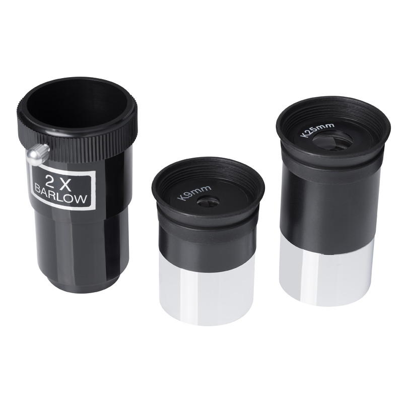 Okulare werden für die Beobachtung benötigt. Sie erzielen je nach Brennweite eine bestimmte Vergrößerung. Die Angabe 1,25" bezieht sich auf den Durchmesser der Steckhülse (1,25" = 31,8 Millimeter).