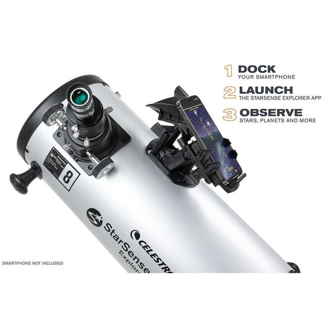 Es muss lediglich die kostenlose StarSense Explorer-App auf dem Smartphone installiert und das Smartphone in die spezielle Halterung des Teleskops eingelegt werden.