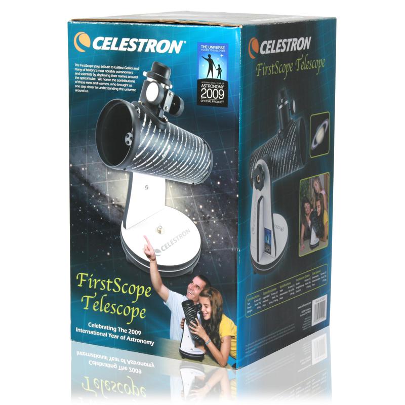 Man sieht dem Celestron Firstscope 76 sofort an, das es als "Offizielles Produkt" des Astronomiejahres vom Komitee der "Internationalen Astronomischen Union" berufen wurde. Es ist ein wundervolles, dekoratives Erinnerungsstück für jeden der sich mit der Astronomie beschäftigt.