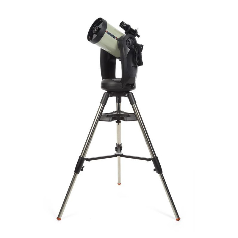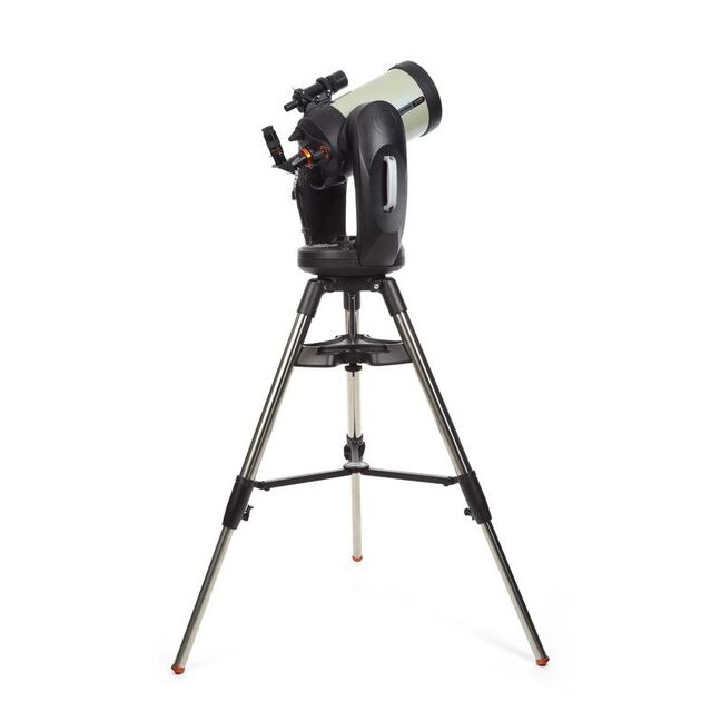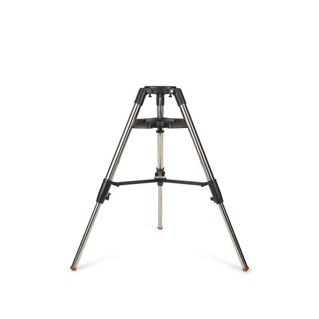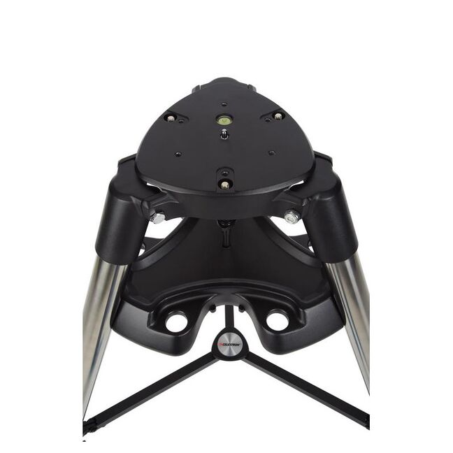 Eine wichtige Besonderheit der CPC-Teleskope ist das hoch belastbare Stativ mit rostfreien Stahlrohrbeinen und Zubehörablage/Stativspreizer aus Aluminiumguss für felsenfesten Stand, mit federunterstützten Montageschrauben und Mittelrastvorrichtung für schnelles Aufstellen, höhenverstellbar für stehende oder sitzende Beobachtungshaltung.