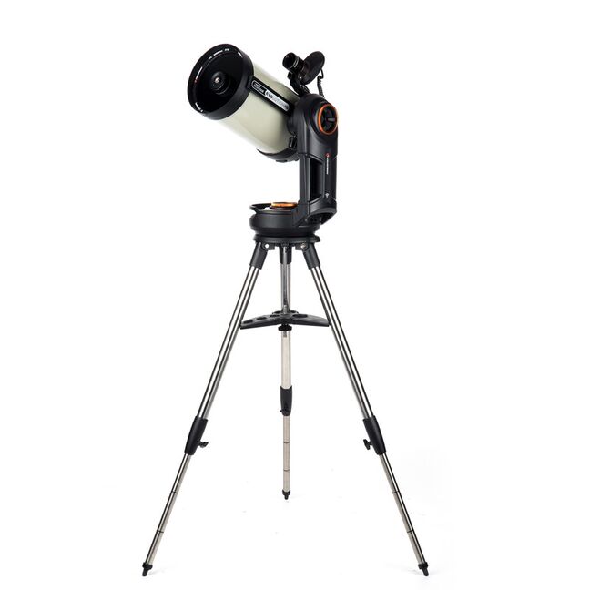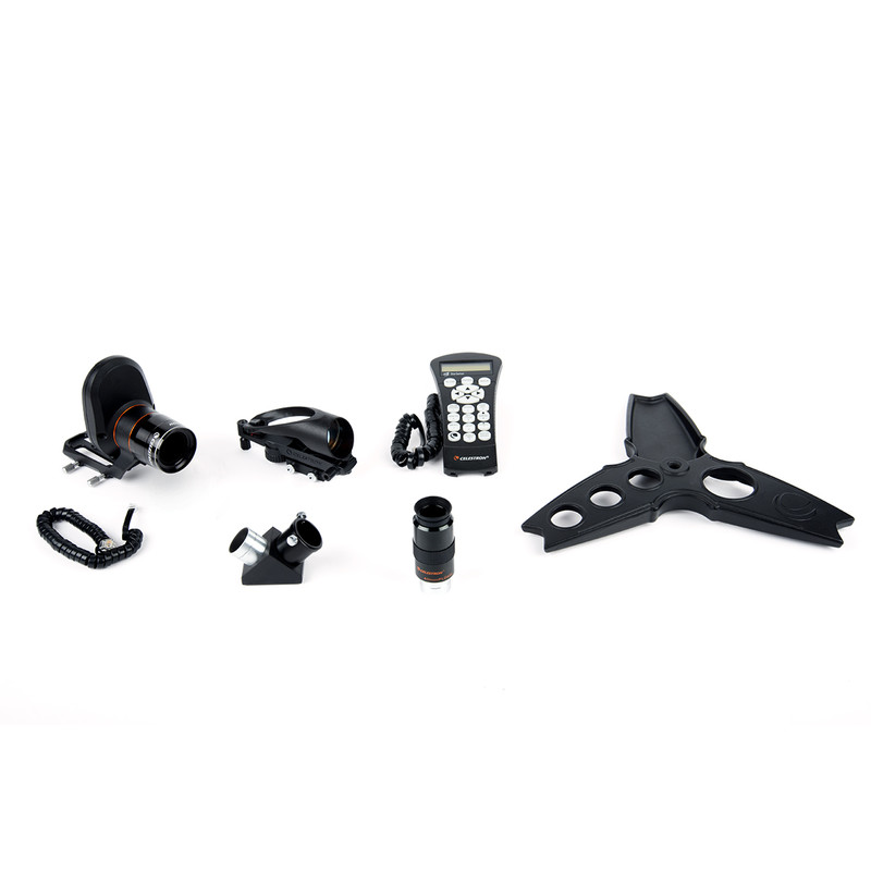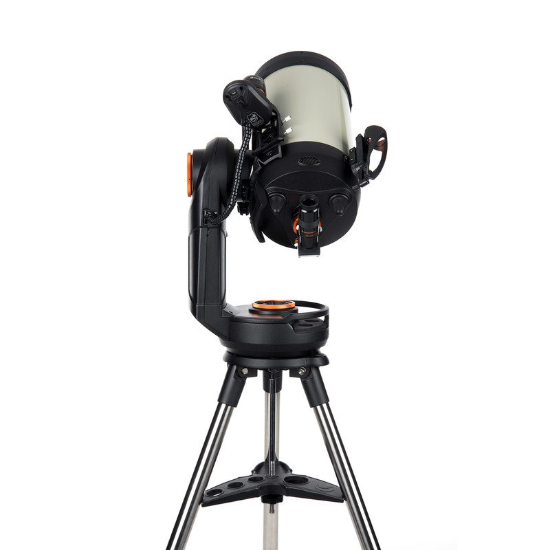 - Noch mehr Ergonomie: Das von Celestron mit den CPC-Teleskopen eingeführte innovative Produktdesign findet sich jetzt auch bei den NexStar-Teleskopen wieder. Dazu gehören neben dem verstärkten Antrieb viele "Kleinigkeiten", die das Beobachten angenehmer machen: Ein sehr stabiles Stativ, dessen Zubehörablage nicht abmontiert werden muss, um es komplett zu falten. Die Stativbeine haben Einkerbungen, so dass Sie die Beine alle gleich weit ausziehen können. Die Flügeln der Klemmschrauben sind nach Innen gerichtet, damit Sie nicht bei Dunkelheit daran hängen bleiben. Der Montierungstisch dient als Okularablage und wurde dafür mit einer Gummiauflage versehen. Sehr dezentes rotes Licht hilft Ihnen Ihr Zubehör sicher zu finden. Dank dem Tragegriff im Gabelarm und Haltegriffe um den Gabelfuß ist das Handling sehr einfach und angenehm.