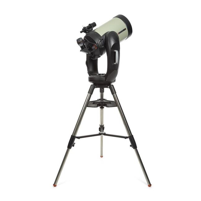 Eine wichtige Besonderheit der CPC-Teleskope ist das hoch belastbare Stativ mit rostfreien Stahlrohrbeinen und Zubehörablage/Stativspreizer aus Aluminiumguss für felsenfesten Stand, mit federunterstützten Montageschrauben und Mittelrastvorrichtung für schnelles Aufstellen, höhenverstellbar für stehende oder sitzende Beobachtungshaltung.