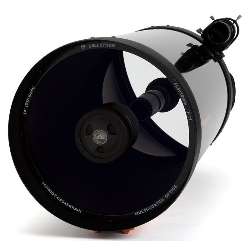 Trotz der langen Brennweite der Schmidt-Cassegrain-Optik, bietet der Tubus eine sehr kurze Bauweise, welche das System zu einem kompakten Fernrohr macht, das sich durch extrem leichte Transporteigenschaften auszeichnet. Das Licht trifft auf eine asphärisch geformte Schmidt Korrekturplatte und wird weiter auf den sphärischen Hauptspiegel geworfen. Dieser reflektiert es auf einen Sekundärspiegel, der es wieder in Richtung Hauptspiegel zurückwirft. Das Lichtbündel passiert nun wieder den Hauptspiegel, der über ein zentrisches Loch verfügt. So wird das Licht in den am hinterem Tubusende befindlichen Okularauszug geworfen. Damit ist das System geschlossen und leidet nicht unter Luftturbulenzen, die die Abbildung verschlechtern könnten. Natürlich ist so auch ein optimaler Staubschutz gegeben. Die Schmidtplatte ist mehrschichtvergütet, was für helle und reflexarme Bilder sorgt.
