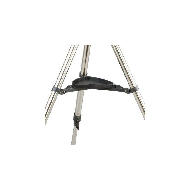Die Montierung Celestron AZ: Diese azimutale Montierung ist ausreichend für Teleskope bis ca. 3kg Gewicht. Über einen drehbaren Handgriff kann die Montierung mit einer Hand auf jedes beliebige Objekt ausgerichtet und festgestellt werden. Das höhenverstellbare und komplett vormontierte Stativ besitzt Stahlrohrbeine mit 1,25" Durchmesser. Es trägt die Montierung und das Teleskop stabil und schwingungsarm. Auf der Zubehörablage können Sie wichtiges Zubehör aufbewahren und haben dieses immer in Griffweite.
