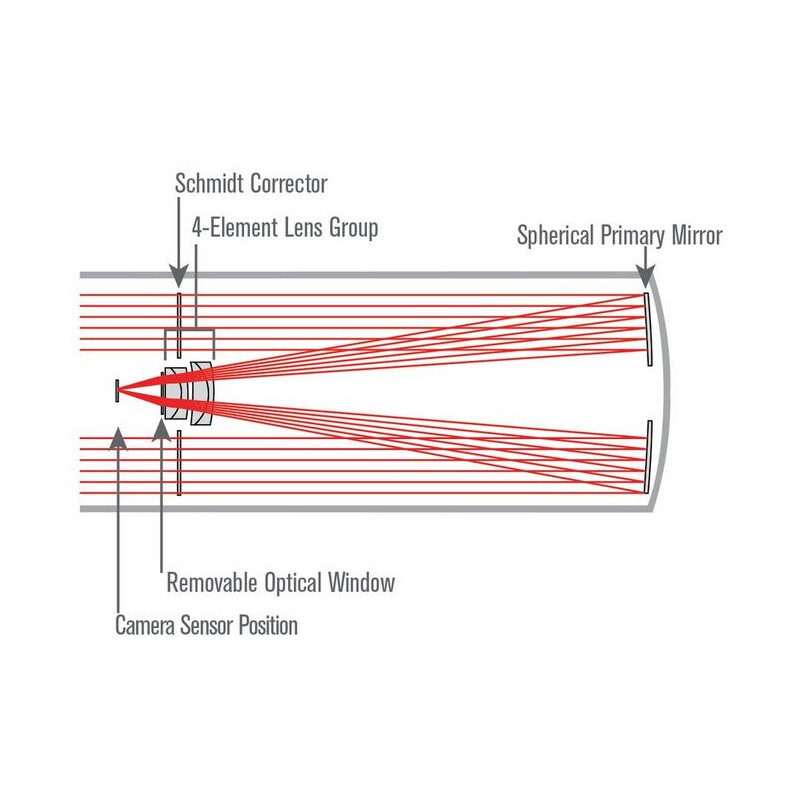 Der Rowe-Ackermann Schmidt Astrograph wurde als vollständiges System für die Astrofotografie entwickelt und liefert mit DSLR- und astronomischen CCD-Kameras die besten Ergebnisse. Jedes Element bis hin zur Dicke des Glases im vollständig mehrfachvergüteten optischen Fenster oder optionalen Filtern wurde jede Komponente des Systems berücksichtigt und aufeinander abgestimmt.