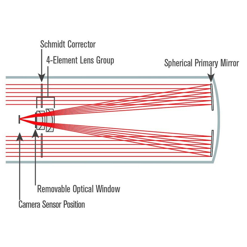 Der Rowe-Ackermann Schmidt Astrograph wurde als vollständiges System für die Astrofotografie entwickelt und liefert mit DSLR- und astronomischen CCD-Kameras die besten Ergebnisse. Jedes Element bis hin zur Dicke des Glases im vollständig mehrfachvergüteten optischen Fenster oder optionalen Filtern wurde jede Komponente des Systems berücksichtigt und aufeinander abgestimmt.