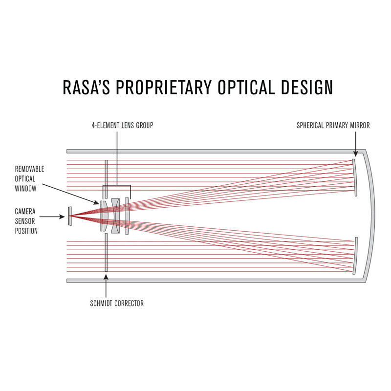 Der Rowe-Ackermann Schmidt Astrograph wurde als vollständiges System für die Astrofotografie entwickelt und liefert mit DSLR- und astronomischen CCD-Kameras die besten Ergebnisse. Jedes Element bis hin zur Dicke des Glases im vollständig mehrfachvergüteten optischen Fenster oder optionalen Filtern wurde jede Komponente des Systems berücksichtigt und aufeinander abgestimmt.