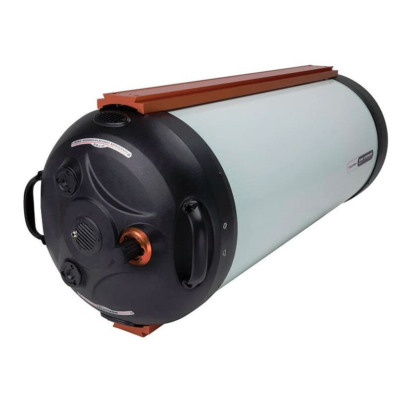 - Die beiden vorinstallierten breiten Prismenschienen (Losmandy-Standard) erlauben die Montage auf große Montierungen und die weitere Adaption von Zubehör, zum Beispiel ein Fernrohr für die visuelle Kontrolle.